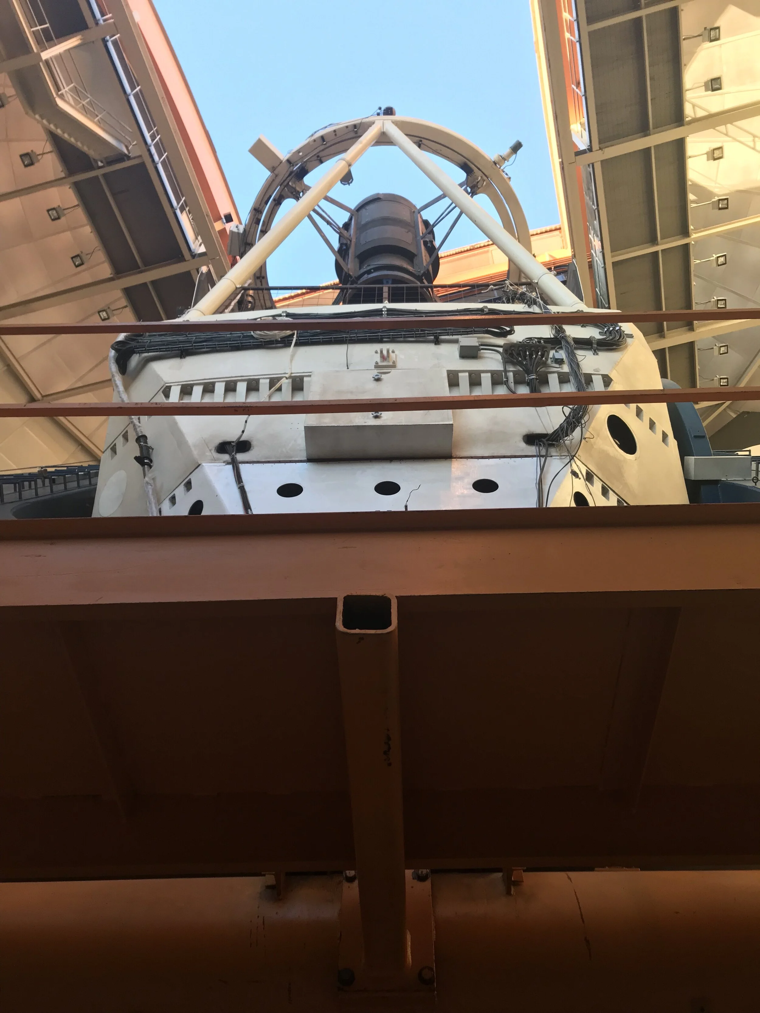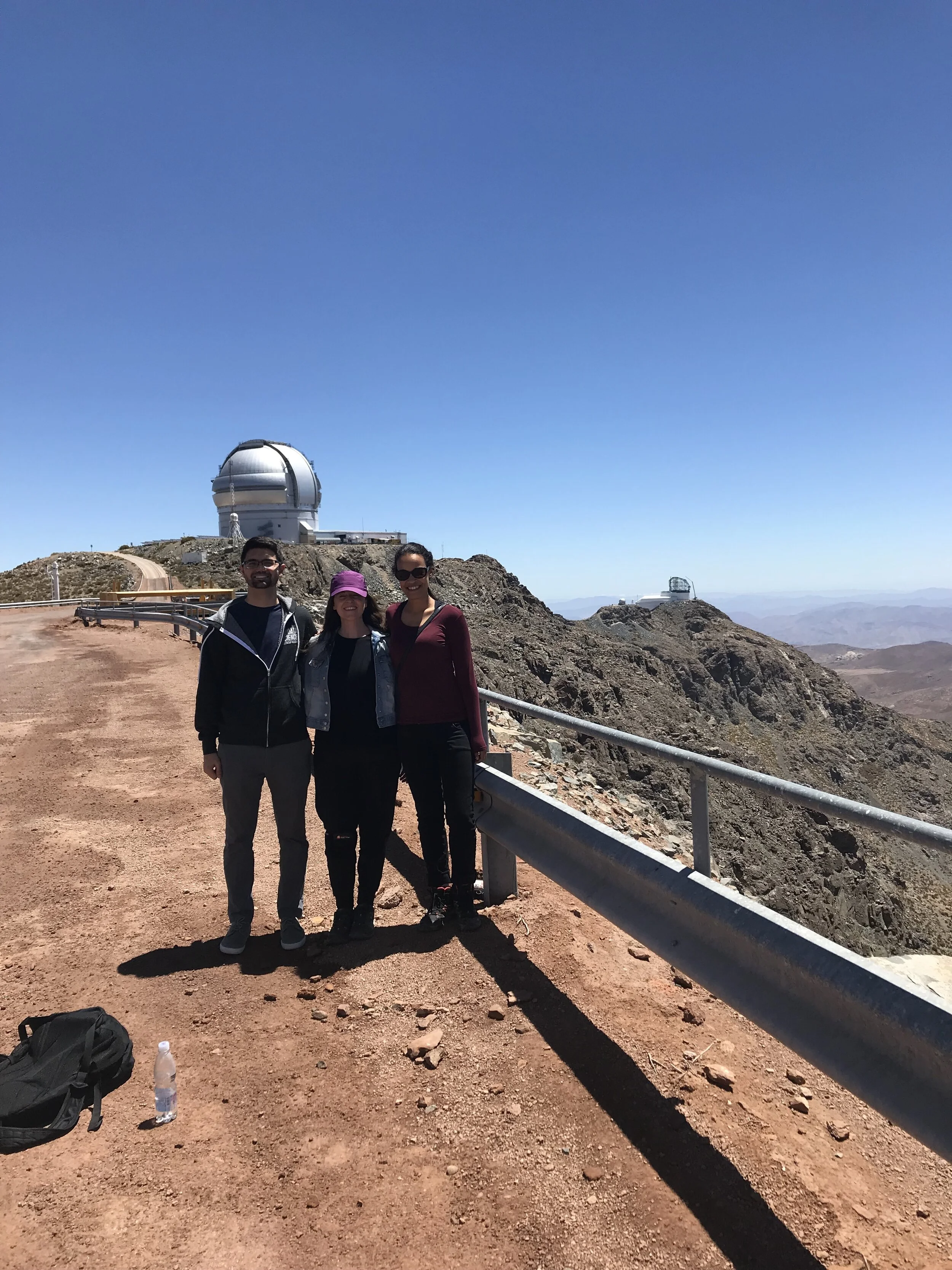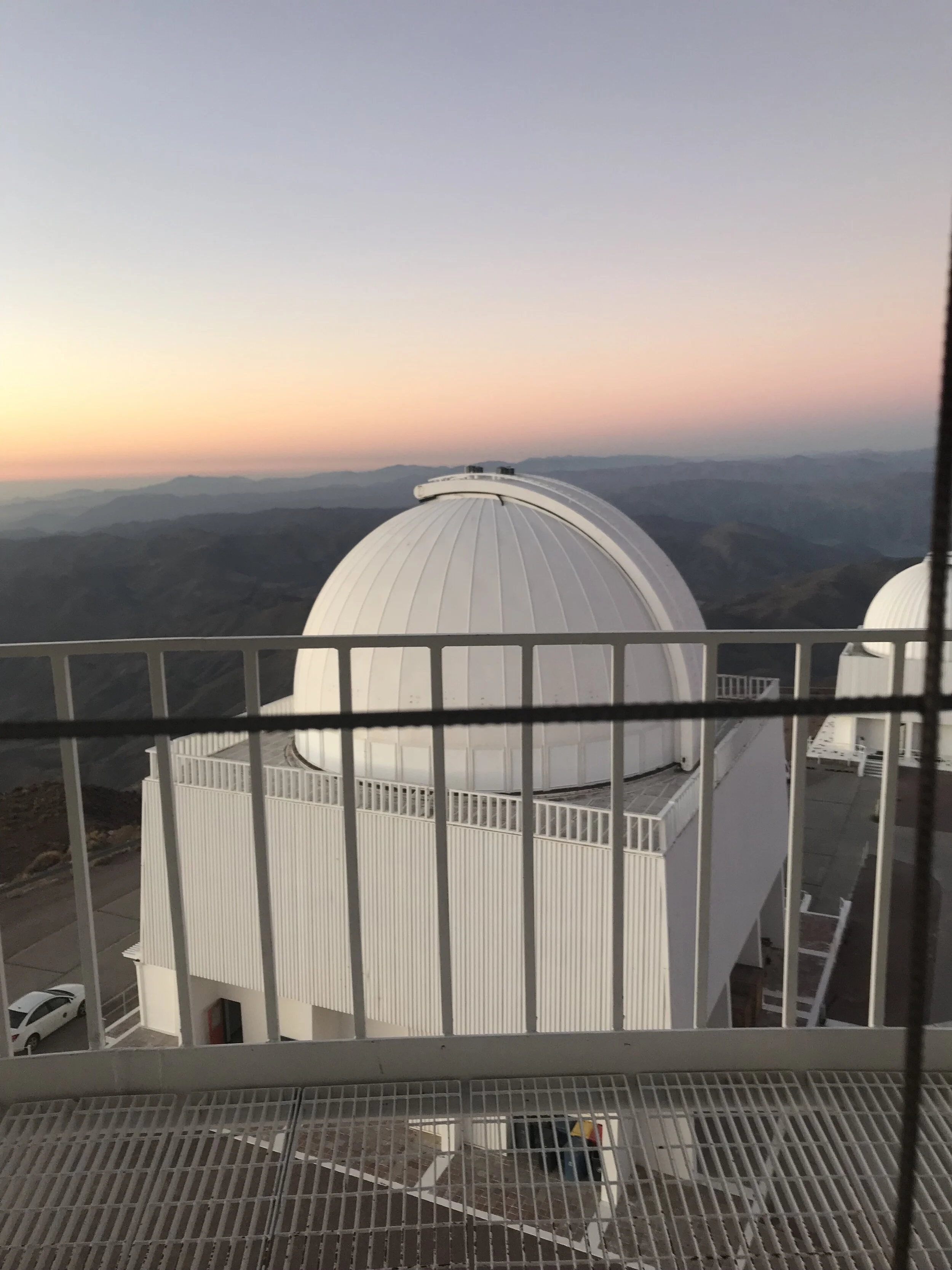 My journey to Cerro Tololo began with a flight from the United States to Santiago and another flight north to La Serena. The next morning I boarded a van that traveled a winding and established but mostly dirt road, climbing two hours up the Andes to Cerro Tololo. Stepping out of the van, I was in the quiet presence of a blue sky overlooking mountains on all sides. The white telescopes gleamed up the hill. I checked into my lodging where visiting astronomers stay. In the sunny, window-lined cafeteria, I soon met Josh and others, including the astrophysicist Satya Gontcho A Gontcho.