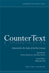An extended work of poetry and poetics that explores Amy Catanzano’s research at CERN and beyond, “The Positron Passport: An Essay-Poem in Quantum Poetics,” appears in CounterText: A Journal for the Study of the Post-Literary in a Special Issue on Poetry Elsewhere, Elsewhere Poetry, guest edited by Ming-Qian Ma. Other contributors are Will Alexander, Rae Armantrout, Joseph Donahue, Andrew Dorkin, João Paulo Guimarães, Steve McCaffery, Ariana Nadia Nash, Jed Rasula, Sasha Steensen, and Henry Sussman. CounterText, informed by perspectives derived from literary criticism, cultural criticism, philosophy, and political theory, with a particular interest in studying technology’s reshaping of literary and post-literary cultures, is edited by Ivan Callus and James Corby and published by Edinburgh University Press.