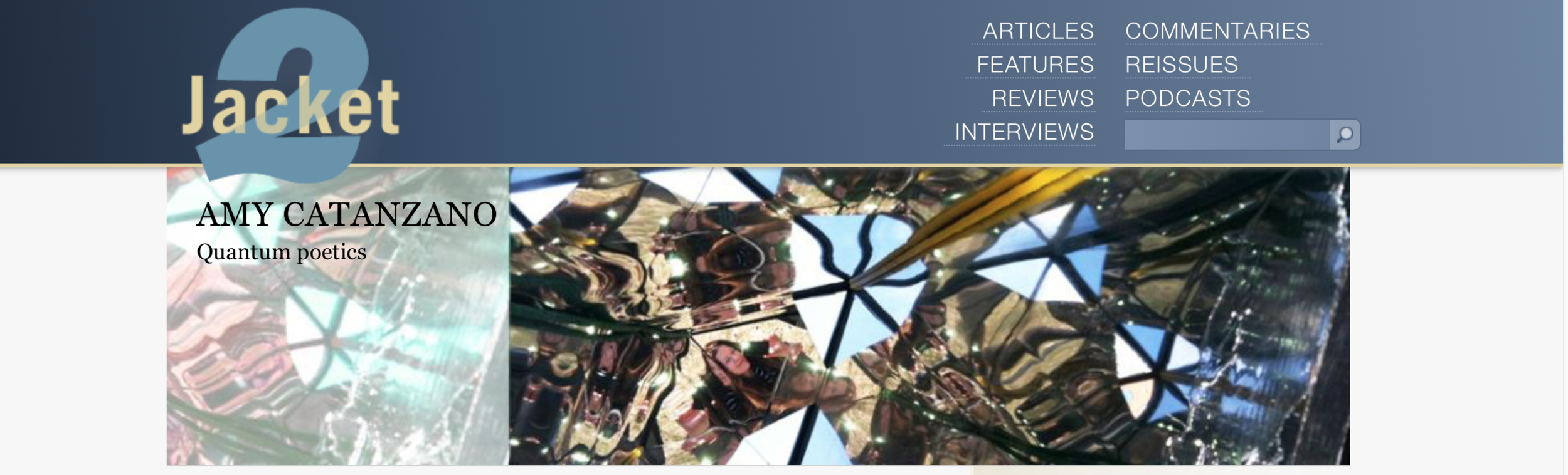 A Commentary Series on Quantum Poetics by Amy Catanzano at Jacket2, the online journal for modern and contemporary poetry and poetics at the University of Pennsylvania, features 18 short essays by Catanzano about authors who work from concepts in quantum mechanics and related physics. The series reprinted M. NourbeSe Philip’s essay, “Black W/Holes: A History of Brief Time,” on race, poetry, and science and a conversation on poetry and science between Catanzano and Andrew Joron.